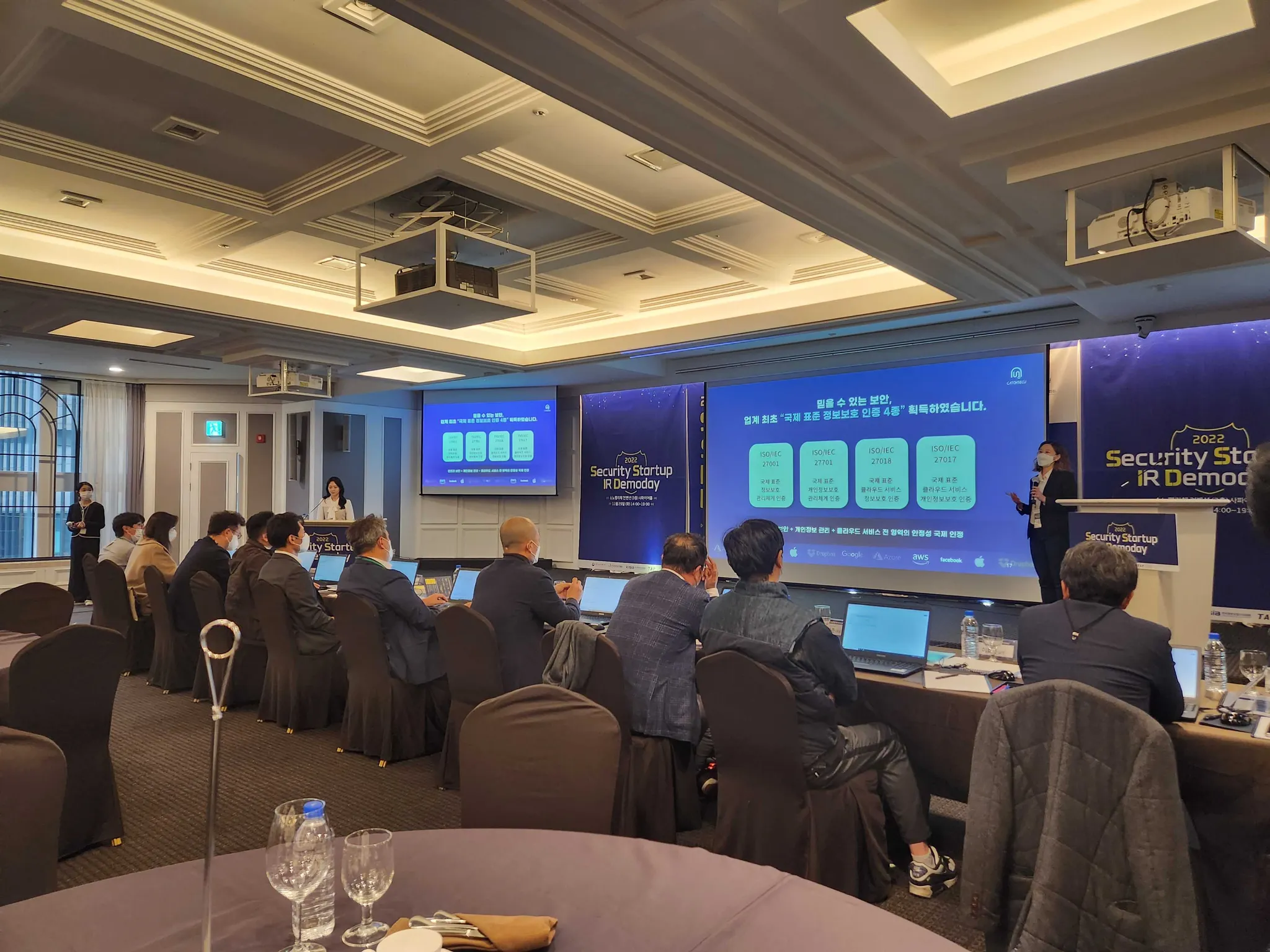 이번 행사는 정보보호 스타트업 IR 경연대회로 구성된 1부와 정보보호 산업 송년회로 구성된 2부로 나누어 진행되었어요. 특히, 핵심 프로그램이라고 할 수 있는 1부의 IR 경연대회에서는 총 10개의 잠재력 있는 스타트업이 IR 발표를 진행하였는데요.